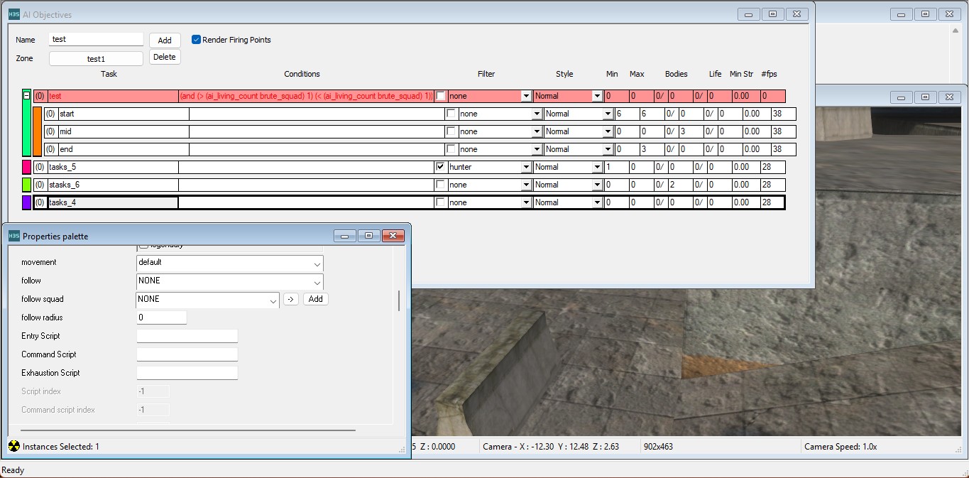In sapien under the AI section, you can now go to your AI squad and assign them the new objective and task you just made. Save the scenario (ctrl + S), do a map reset (ctrl + R) and place your AI squad down. Observe your results
